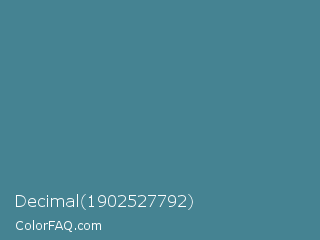 Decimal 1902527792 Color is a normal cyan color and the nearest color is Smalt Blue #51808f. Hex code #458392 and RGB value is rgb(69,131,146). In RGB color space, this color is composed of 27% red, 51% green, 57% blue, In CMYK color space, this color is composed of 53% cyan, 10% magenta, 0% yellow , 43% black , In HSL color space, this color has a hue angle of 192° , 36% saturation and 42% lightness.