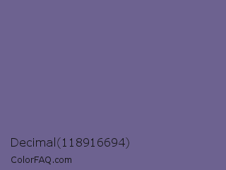 Decimal 118916694 Color is a normal indigo color and the nearest color is Dark Blue Gray #666699. Hex code #6d6290 and RGB value is rgb(109,98,144). In RGB color space, this color is composed of 43% red, 38% green, 56% blue, In CMYK color space, this color is composed of 24% cyan, 32% magenta, 0% yellow , 44% black , In HSL color space, this color has a hue angle of 254° , 19% saturation and 47% lightness.