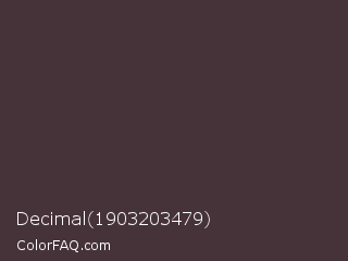 Decimal 1903203479 Color is a dark rose color and the nearest color is Woody Brown #483131. Hex code #463339 and RGB value is rgb(70,51,57). In RGB color space, this color is composed of 27% red, 20% green, 22% blue, In CMYK color space, this color is composed of 0% cyan, 27% magenta, 19% yellow , 73% black , In HSL color space, this color has a hue angle of 341° , 16% saturation and 24% lightness.