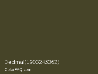 Decimal 1903245362 Color is a very dark yellow color and the nearest color is Mondo #4a3c30. Hex code #464428 and RGB value is rgb(70,68,40). In RGB color space, this color is composed of 27% red, 27% green, 16% blue, In CMYK color space, this color is composed of 0% cyan, 3% magenta, 43% yellow , 73% black , In HSL color space, this color has a hue angle of 56° , 27% saturation and 22% lightness.