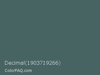 Decimal 1903719266 Color is a normal cyan color and the nearest color is Deep Space Sparkle #4a646c. Hex code #476362 and RGB value is rgb(71,99,98). In RGB color space, this color is composed of 28% red, 39% green, 38% blue, In CMYK color space, this color is composed of 28% cyan, 0% magenta, 1% yellow , 61% black , In HSL color space, this color has a hue angle of 178° , 16% saturation and 33% lightness.