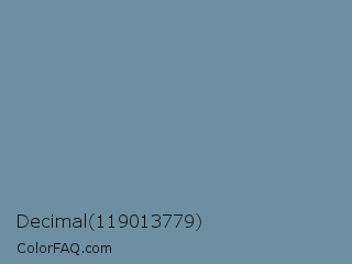 Decimal 119013779 Color is a normal blue color and the nearest color is Gothic #6d92a1. Hex code #6d8fa1 and RGB value is rgb(109,143,161). In RGB color space, this color is composed of 43% red, 56% green, 63% blue, In CMYK color space, this color is composed of 32% cyan, 11% magenta, 0% yellow , 37% black , In HSL color space, this color has a hue angle of 201° , 22% saturation and 53% lightness.