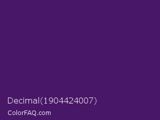 Decimal 1904424007 Color is a dark purple color and the nearest color is Scarlet Gum #431560. Hex code #481767 and RGB value is rgb(72,23,103). In RGB color space, this color is composed of 28% red, 9% green, 40% blue, In CMYK color space, this color is composed of 30% cyan, 78% magenta, 0% yellow , 60% black , In HSL color space, this color has a hue angle of 277° , 63% saturation and 25% lightness.