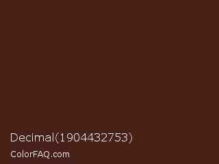 Decimal 1904432753 Color is a very dark red color and the nearest color is Brown Derby #492615. Hex code #482017 and RGB value is rgb(72,32,23). In RGB color space, this color is composed of 28% red, 13% green, 9% blue, In CMYK color space, this color is composed of 0% cyan, 56% magenta, 68% yellow , 72% black , In HSL color space, this color has a hue angle of 11° , 52% saturation and 19% lightness.