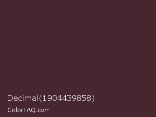 Decimal 1904439858 Color is a very dark rose color and the nearest color is Livid Brown #4d282e. Hex code #482630 and RGB value is rgb(72,38,48). In RGB color space, this color is composed of 28% red, 15% green, 19% blue, In CMYK color space, this color is composed of 0% cyan, 47% magenta, 33% yellow , 72% black , In HSL color space, this color has a hue angle of 342° , 31% saturation and 22% lightness.