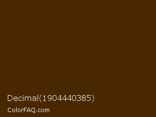 Decimal 1904440385 Color is a very dark orange color and the nearest color is Bracken #4a2a04. Hex code #482701 and RGB value is rgb(72,39,1). In RGB color space, this color is composed of 28% red, 15% green, 0% blue, In CMYK color space, this color is composed of 0% cyan, 46% magenta, 99% yellow , 72% black , In HSL color space, this color has a hue angle of 32° , 97% saturation and 14% lightness.