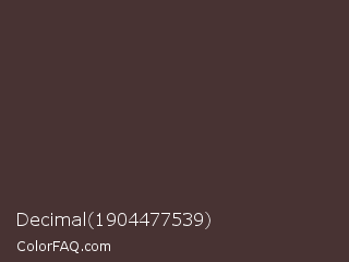 Decimal 1904477539 Color is a dark red color and the nearest color is Woody Brown #483131. Hex code #483333 and RGB value is rgb(72,51,51). In RGB color space, this color is composed of 28% red, 20% green, 20% blue, In CMYK color space, this color is composed of 0% cyan, 29% magenta, 29% yellow , 72% black , In HSL color space, this color has a hue angle of 0° , 17% saturation and 24% lightness.