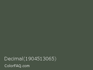 Decimal 1904513065 Color is a dark green color and the nearest color is Gray Asparagus #465945. Hex code #485445 and RGB value is rgb(72,84,69). In RGB color space, this color is composed of 28% red, 33% green, 27% blue, In CMYK color space, this color is composed of 14% cyan, 0% magenta, 18% yellow , 67% black , In HSL color space, this color has a hue angle of 108° , 10% saturation and 30% lightness.