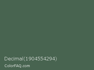 Decimal 1904554294 Color is a normal green color and the nearest color is Nandor #4b5d52. Hex code #486450 and RGB value is rgb(72,100,80). In RGB color space, this color is composed of 28% red, 39% green, 31% blue, In CMYK color space, this color is composed of 28% cyan, 0% magenta, 20% yellow , 61% black , In HSL color space, this color has a hue angle of 137° , 16% saturation and 34% lightness.