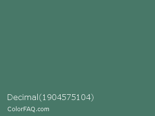 Decimal 1904575104 Color is a normal green color and the nearest color is Hookers Green #49796b. Hex code #487868 and RGB value is rgb(72,120,104). In RGB color space, this color is composed of 28% red, 47% green, 41% blue, In CMYK color space, this color is composed of 40% cyan, 0% magenta, 13% yellow , 53% black , In HSL color space, this color has a hue angle of 160° , 25% saturation and 38% lightness.