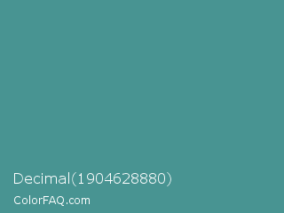 Decimal 1904628880 Color is a normal cyan color and the nearest color is Smalt Blue #51808f. Hex code #489492 and RGB value is rgb(72,148,146). In RGB color space, this color is composed of 28% red, 58% green, 57% blue, In CMYK color space, this color is composed of 51% cyan, 0% magenta, 1% yellow , 42% black , In HSL color space, this color has a hue angle of 178° , 35% saturation and 43% lightness.