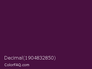 Decimal 1904832850 Color is a very dark magenta color and the nearest color is Loulou #460b41. Hex code #491040 and RGB value is rgb(73,16,64). In RGB color space, this color is composed of 29% red, 6% green, 25% blue, In CMYK color space, this color is composed of 0% cyan, 78% magenta, 12% yellow , 71% black , In HSL color space, this color has a hue angle of 309° , 64% saturation and 17% lightness.