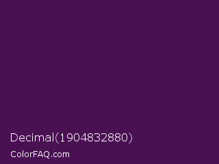 Decimal 1904832880 Color is a very dark magenta color and the nearest color is Clairvoyant #480656. Hex code #491052 and RGB value is rgb(73,16,82). In RGB color space, this color is composed of 29% red, 6% green, 32% blue, In CMYK color space, this color is composed of 11% cyan, 80% magenta, 0% yellow , 68% black , In HSL color space, this color has a hue angle of 292° , 67% saturation and 19% lightness.