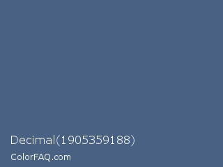 Decimal 1905359188 Color is a normal blue color and the nearest color is Blue Bayoux #496679. Hex code #496182 and RGB value is rgb(73,97,130). In RGB color space, this color is composed of 29% red, 38% green, 51% blue, In CMYK color space, this color is composed of 44% cyan, 25% magenta, 0% yellow , 49% black , In HSL color space, this color has a hue angle of 215° , 28% saturation and 40% lightness.