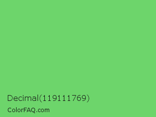 Decimal 119111769 Color is a light green color and the nearest color is Pastel Green #77dd77. Hex code #6dd56b and RGB value is rgb(109,213,107). In RGB color space, this color is composed of 43% red, 84% green, 42% blue, In CMYK color space, this color is composed of 49% cyan, 0% magenta, 50% yellow , 16% black , In HSL color space, this color has a hue angle of 119° , 56% saturation and 63% lightness.