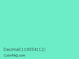 Decimal 119554112 Color is a light green color and the nearest color is Bermuda #7dd8c6. Hex code #6decc8 and RGB value is rgb(109,236,200). In RGB color space, this color is composed of 43% red, 93% green, 78% blue, In CMYK color space, this color is composed of 54% cyan, 0% magenta, 15% yellow , 7% black , In HSL color space, this color has a hue angle of 163° , 77% saturation and 68% lightness.