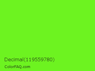 Decimal 119559780 Color is a normal green color and the nearest color is Spring Frost #87ff2a. Hex code #6df320 and RGB value is rgb(109,243,32). In RGB color space, this color is composed of 43% red, 95% green, 13% blue, In CMYK color space, this color is composed of 55% cyan, 0% magenta, 87% yellow , 5% black , In HSL color space, this color has a hue angle of 98° , 90% saturation and 54% lightness.
