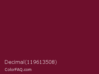 Decimal 119613508 Color is a dark rose color and the nearest color is Black Rose #67032d. Hex code #6e0f2c and RGB value is rgb(110,15,44). In RGB color space, this color is composed of 43% red, 6% green, 17% blue, In CMYK color space, this color is composed of 0% cyan, 86% magenta, 60% yellow , 57% black , In HSL color space, this color has a hue angle of 342° , 76% saturation and 25% lightness.