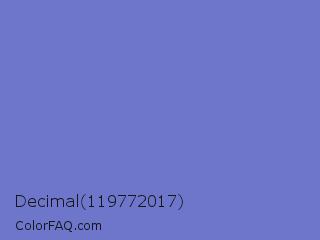 Decimal 119772017 Color is a light blue color and the nearest color is Toolbox #746cc0. Hex code #6e76cb and RGB value is rgb(110,118,203). In RGB color space, this color is composed of 43% red, 46% green, 80% blue, In CMYK color space, this color is composed of 46% cyan, 42% magenta, 0% yellow , 20% black , In HSL color space, this color has a hue angle of 235° , 47% saturation and 61% lightness.
