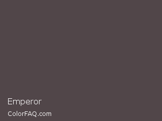 Decimal 1917014643 Color is a dark rose color, the color name is Emperor and the nearest color is Quartz #51484f. Hex code #514649 and RGB value is rgb(81,70,73). In RGB color space, this color is composed of 32% red, 27% green, 29% blue, In CMYK color space, this color is composed of 0% cyan, 14% magenta, 10% yellow , 68% black , In HSL color space, this color has a hue angle of 344° , 7% saturation and 30% lightness.