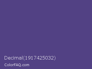Decimal 1917425032 Color is a normal indigo color and the nearest color is Cyber Grape #58427c. Hex code #524184 and RGB value is rgb(82,65,132). In RGB color space, this color is composed of 32% red, 25% green, 52% blue, In CMYK color space, this color is composed of 38% cyan, 51% magenta, 0% yellow , 48% black , In HSL color space, this color has a hue angle of 255° , 34% saturation and 39% lightness.