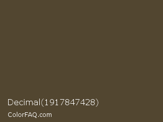 Decimal 1917847428 Color is a dark orange color and the nearest color is Judge Gray #544333. Hex code #524630 and RGB value is rgb(82,70,48). In RGB color space, this color is composed of 32% red, 27% green, 19% blue, In CMYK color space, this color is composed of 0% cyan, 15% magenta, 41% yellow , 68% black , In HSL color space, this color has a hue angle of 39° , 26% saturation and 25% lightness.