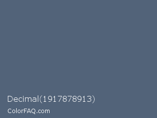 Decimal 1917878913 Color is a normal blue color and the nearest color is Paynes Grey #536878. Hex code #526379 and RGB value is rgb(82,99,121). In RGB color space, this color is composed of 32% red, 39% green, 47% blue, In CMYK color space, this color is composed of 32% cyan, 18% magenta, 0% yellow , 53% black , In HSL color space, this color has a hue angle of 214° , 19% saturation and 40% lightness.