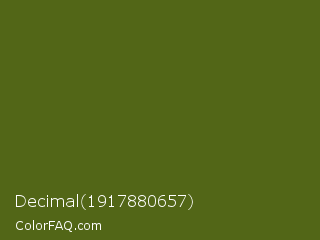 Decimal 1917880657 Color is a dark lime color and the nearest color is Saratoga #555b10. Hex code #526617 and RGB value is rgb(82,102,23). In RGB color space, this color is composed of 32% red, 40% green, 9% blue, In CMYK color space, this color is composed of 20% cyan, 0% magenta, 77% yellow , 60% black , In HSL color space, this color has a hue angle of 75° , 63% saturation and 25% lightness.