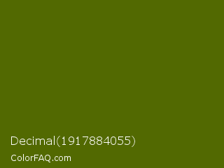 Decimal 1917884055 Color is a very dark lime color and the nearest color is Green Leaf #436a0d. Hex code #526901 and RGB value is rgb(82,105,1). In RGB color space, this color is composed of 32% red, 41% green, 0% blue, In CMYK color space, this color is composed of 22% cyan, 0% magenta, 99% yellow , 59% black , In HSL color space, this color has a hue angle of 73° , 98% saturation and 21% lightness.