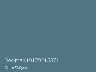 Decimal 1917921537 Color is a normal blue color and the nearest color is Bismark #497183. Hex code #527585 and RGB value is rgb(82,117,133). In RGB color space, this color is composed of 32% red, 46% green, 52% blue, In CMYK color space, this color is composed of 38% cyan, 12% magenta, 0% yellow , 48% black , In HSL color space, this color has a hue angle of 199° , 24% saturation and 42% lightness.