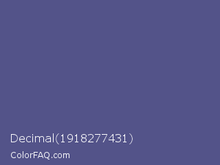 Decimal 1918277431 Color is a normal blue color and the nearest color is Purple Navy #4e5180. Hex code #535389 and RGB value is rgb(83,83,137). In RGB color space, this color is composed of 33% red, 33% green, 54% blue, In CMYK color space, this color is composed of 39% cyan, 39% magenta, 0% yellow , 46% black , In HSL color space, this color has a hue angle of 240° , 25% saturation and 43% lightness.