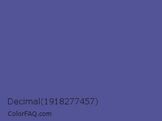 Decimal 1918277457 Color is a normal blue color and the nearest color is Butterfly Bush #624e9a. Hex code #535397 and RGB value is rgb(83,83,151). In RGB color space, this color is composed of 33% red, 33% green, 59% blue, In CMYK color space, this color is composed of 45% cyan, 45% magenta, 0% yellow , 41% black , In HSL color space, this color has a hue angle of 240° , 29% saturation and 46% lightness.
