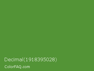 Decimal 1918395028 Color is a normal green color and the nearest color is May Green #4c9141. Hex code #539436 and RGB value is rgb(83,148,54). In RGB color space, this color is composed of 33% red, 58% green, 21% blue, In CMYK color space, this color is composed of 44% cyan, 0% magenta, 64% yellow , 42% black , In HSL color space, this color has a hue angle of 101° , 47% saturation and 40% lightness.