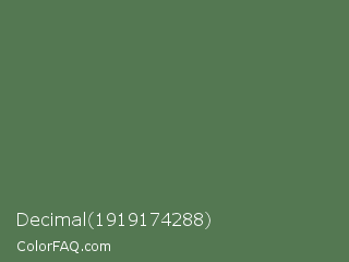 Decimal 1919174288 Color is a normal green color and the nearest color is Cactus #587156. Hex code #547852 and RGB value is rgb(84,120,82). In RGB color space, this color is composed of 33% red, 47% green, 32% blue, In CMYK color space, this color is composed of 30% cyan, 0% magenta, 32% yellow , 53% black , In HSL color space, this color has a hue angle of 117° , 19% saturation and 40% lightness.