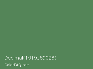 Decimal 1919189028 Color is a normal green color and the nearest color is Middle Green #4d8c57. Hex code #548558 and RGB value is rgb(84,133,88). In RGB color space, this color is composed of 33% red, 52% green, 35% blue, In CMYK color space, this color is composed of 37% cyan, 0% magenta, 34% yellow , 48% black , In HSL color space, this color has a hue angle of 125° , 23% saturation and 43% lightness.