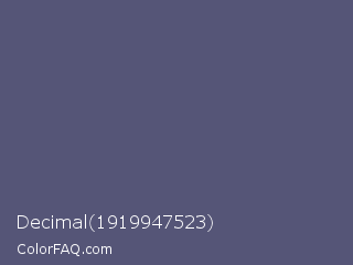 Decimal 1919947523 Color is a normal blue color and the nearest color is Comet #5c5d75. Hex code #555577 and RGB value is rgb(85,85,119). In RGB color space, this color is composed of 33% red, 33% green, 47% blue, In CMYK color space, this color is composed of 29% cyan, 29% magenta, 0% yellow , 53% black , In HSL color space, this color has a hue angle of 240° , 17% saturation and 40% lightness.