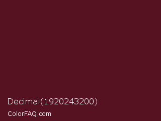 Decimal 1920243200 Color is a very dark red color and the nearest color is Maroon Oak #520c17. Hex code #561220 and RGB value is rgb(86,18,32). In RGB color space, this color is composed of 34% red, 7% green, 13% blue, In CMYK color space, this color is composed of 0% cyan, 79% magenta, 63% yellow , 66% black , In HSL color space, this color has a hue angle of 348° , 65% saturation and 20% lightness.