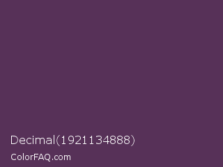 Decimal 1921134888 Color is a dark magenta color and the nearest color is Japanese Violet #5b3256. Hex code #573158 and RGB value is rgb(87,49,88). In RGB color space, this color is composed of 34% red, 19% green, 35% blue, In CMYK color space, this color is composed of 1% cyan, 44% magenta, 0% yellow , 65% black , In HSL color space, this color has a hue angle of 298° , 28% saturation and 27% lightness.