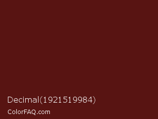 Decimal 1921519984 Color is a very dark red color and the nearest color is Heath #541012. Hex code #581412 and RGB value is rgb(88,20,18). In RGB color space, this color is composed of 35% red, 8% green, 7% blue, In CMYK color space, this color is composed of 0% cyan, 77% magenta, 80% yellow , 65% black , In HSL color space, this color has a hue angle of 2° , 66% saturation and 21% lightness.
