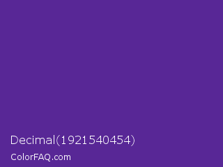 Decimal 1921540454 Color is a normal violet color and the nearest color is Daisy Bush #4f2398. Hex code #582796 and RGB value is rgb(88,39,150). In RGB color space, this color is composed of 35% red, 15% green, 59% blue, In CMYK color space, this color is composed of 41% cyan, 74% magenta, 0% yellow , 41% black , In HSL color space, this color has a hue angle of 266° , 59% saturation and 37% lightness.