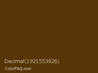 Decimal 1921553926 Color is a very dark orange color and the nearest color is Saddle Brown #583401. Hex code #583506 and RGB value is rgb(88,53,6). In RGB color space, this color is composed of 35% red, 21% green, 2% blue, In CMYK color space, this color is composed of 0% cyan, 40% magenta, 93% yellow , 65% black , In HSL color space, this color has a hue angle of 34° , 87% saturation and 18% lightness.