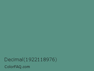Decimal 1922118976 Color is a normal cyan color and the nearest color is Wintergreen Dream #56887d. Hex code #589284 and RGB value is rgb(88,146,132). In RGB color space, this color is composed of 35% red, 57% green, 52% blue, In CMYK color space, this color is composed of 40% cyan, 0% magenta, 10% yellow , 43% black , In HSL color space, this color has a hue angle of 166° , 25% saturation and 46% lightness.
