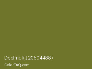 Decimal 120604488 Color is a normal yellow color and the nearest color is Crete #737829. Hex code #6f762c and RGB value is rgb(111,118,44). In RGB color space, this color is composed of 44% red, 46% green, 17% blue, In CMYK color space, this color is composed of 6% cyan, 0% magenta, 63% yellow , 54% black , In HSL color space, this color has a hue angle of 66° , 46% saturation and 32% lightness.