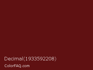 Decimal 1933592208 Color is a very dark red color and the nearest color is Dark Tan #661010. Hex code #601112 and RGB value is rgb(96,17,18). In RGB color space, this color is composed of 38% red, 7% green, 7% blue, In CMYK color space, this color is composed of 0% cyan, 82% magenta, 81% yellow , 62% black , In HSL color space, this color has a hue angle of 359° , 70% saturation and 22% lightness.