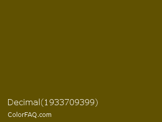 Decimal 1933709399 Color is a very dark yellow color and the nearest color is Antique Bronze #704a07. Hex code #605101 and RGB value is rgb(96,81,1). In RGB color space, this color is composed of 38% red, 32% green, 0% blue, In CMYK color space, this color is composed of 0% cyan, 16% magenta, 99% yellow , 62% black , In HSL color space, this color has a hue angle of 51° , 98% saturation and 19% lightness.
