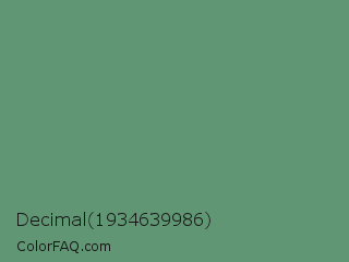 Decimal 1934639986 Color is a normal green color and the nearest color is Viridian Green #678975. Hex code #619674 and RGB value is rgb(97,150,116). In RGB color space, this color is composed of 38% red, 59% green, 45% blue, In CMYK color space, this color is composed of 35% cyan, 0% magenta, 23% yellow , 41% black , In HSL color space, this color has a hue angle of 142° , 21% saturation and 48% lightness.