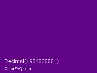 Decimal 1934828881 Color is a dark purple color and the nearest color is Purple #660099. Hex code #620487 and RGB value is rgb(98,4,135). In RGB color space, this color is composed of 38% red, 2% green, 53% blue, In CMYK color space, this color is composed of 27% cyan, 97% magenta, 0% yellow , 47% black , In HSL color space, this color has a hue angle of 283° , 94% saturation and 27% lightness.