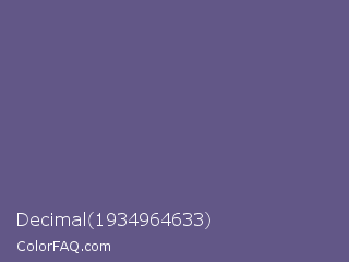 Decimal 1934964633 Color is a normal indigo color and the nearest color is Dolphin #646077. Hex code #625787 and RGB value is rgb(98,87,135). In RGB color space, this color is composed of 38% red, 34% green, 53% blue, In CMYK color space, this color is composed of 27% cyan, 36% magenta, 0% yellow , 47% black , In HSL color space, this color has a hue angle of 254° , 22% saturation and 44% lightness.
