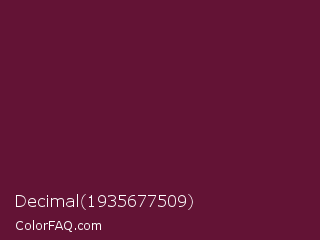 Decimal 1935677509 Color is a dark rose color and the nearest color is Wine Berry #591d35. Hex code #631335 and RGB value is rgb(99,19,53). In RGB color space, this color is composed of 39% red, 7% green, 21% blue, In CMYK color space, this color is composed of 0% cyan, 81% magenta, 46% yellow , 61% black , In HSL color space, this color has a hue angle of 335° , 68% saturation and 23% lightness.