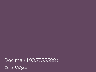 Decimal 1935755588 Color is a normal magenta color and the nearest color is Eggplant #614051. Hex code #634660 and RGB value is rgb(99,70,96). In RGB color space, this color is composed of 39% red, 27% green, 38% blue, In CMYK color space, this color is composed of 0% cyan, 29% magenta, 3% yellow , 61% black , In HSL color space, this color has a hue angle of 306° , 17% saturation and 33% lightness.